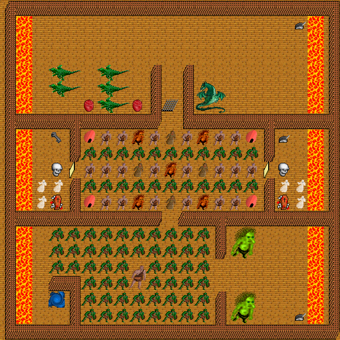 Monsters on map (level from 2 to 25): chinese dragon, ghost, goblin, hill giant, ogre, skull, small troll, troll, wraith, wyvern.