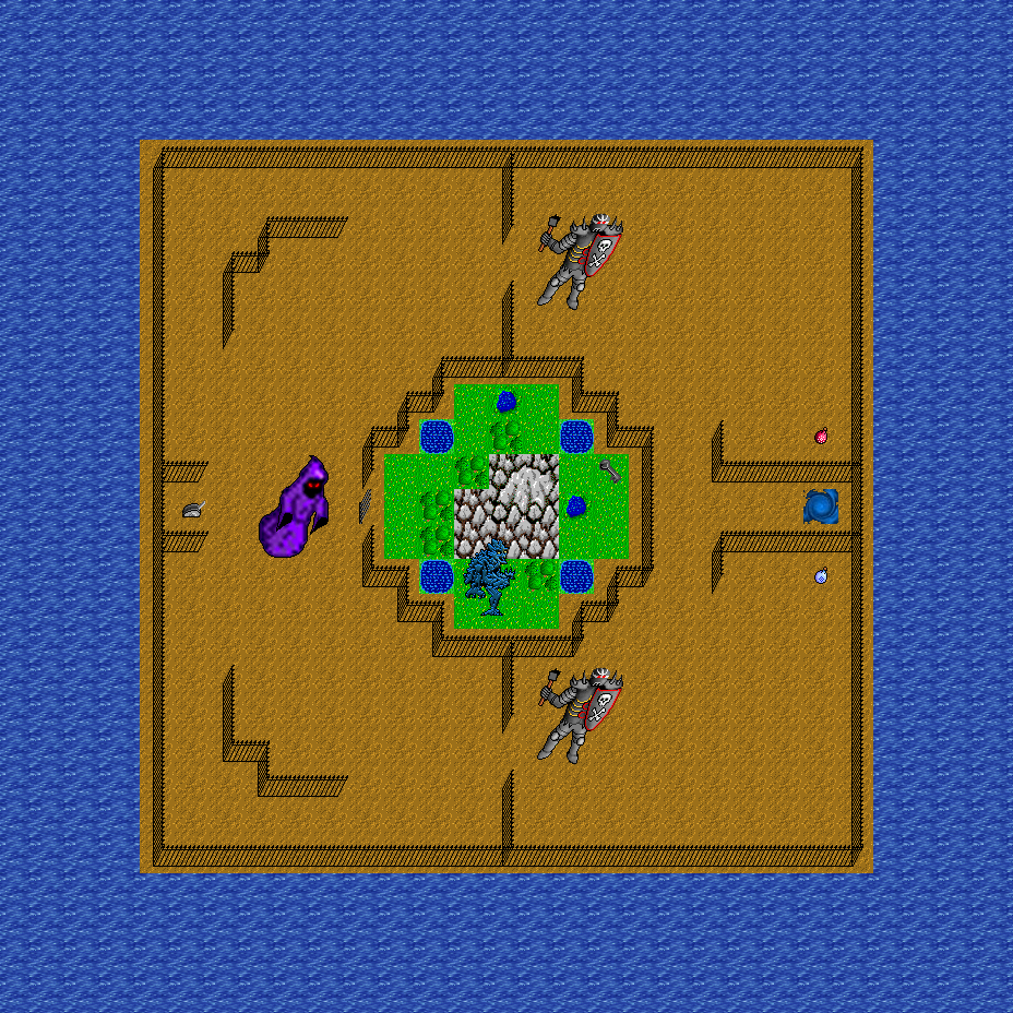 Monsters on map (level from 49 to 80): gaelotroll, titan, wizard.