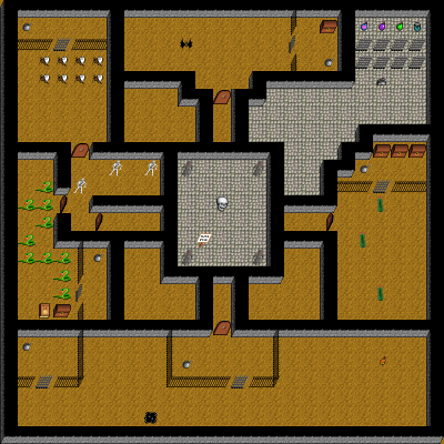 Monsters on map (level from 2 to 8): black pudding, giant bat, large centipede, skeleton, snake, wraith, xan.