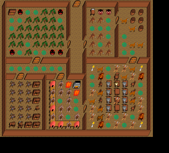 Monsters on map (level from 1 to 9): acid sphere, dog, fire elemental, gnoll, goblin, goblin chief, madman, mastiff, ogre, ogre champion, orc, orc chief, small troll.
