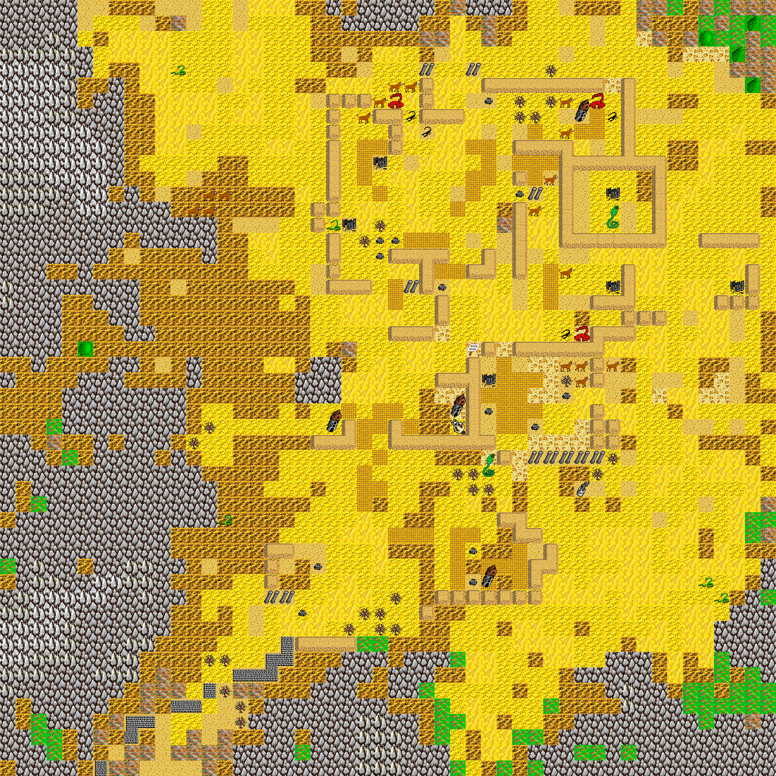Monsters on map (level from 2 to 5): Coyote, giant cobra, scorpion, snake.